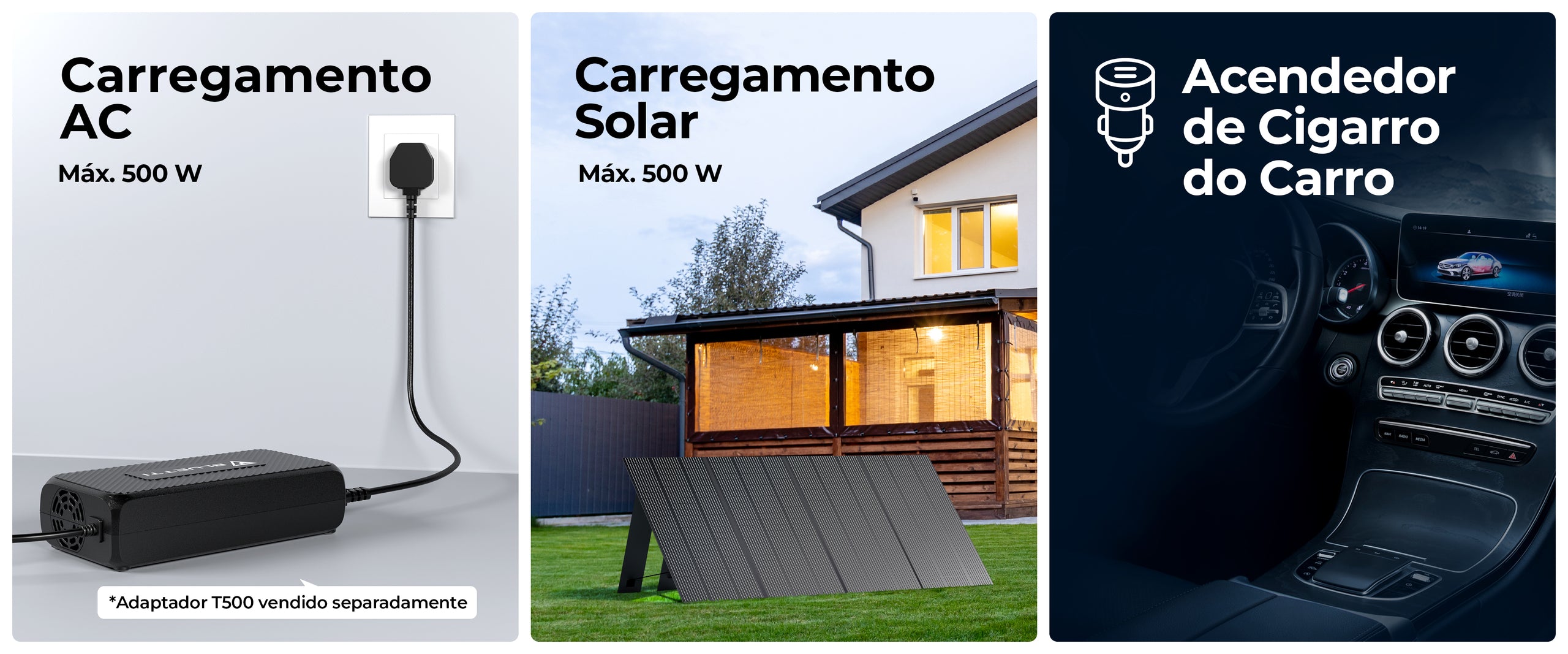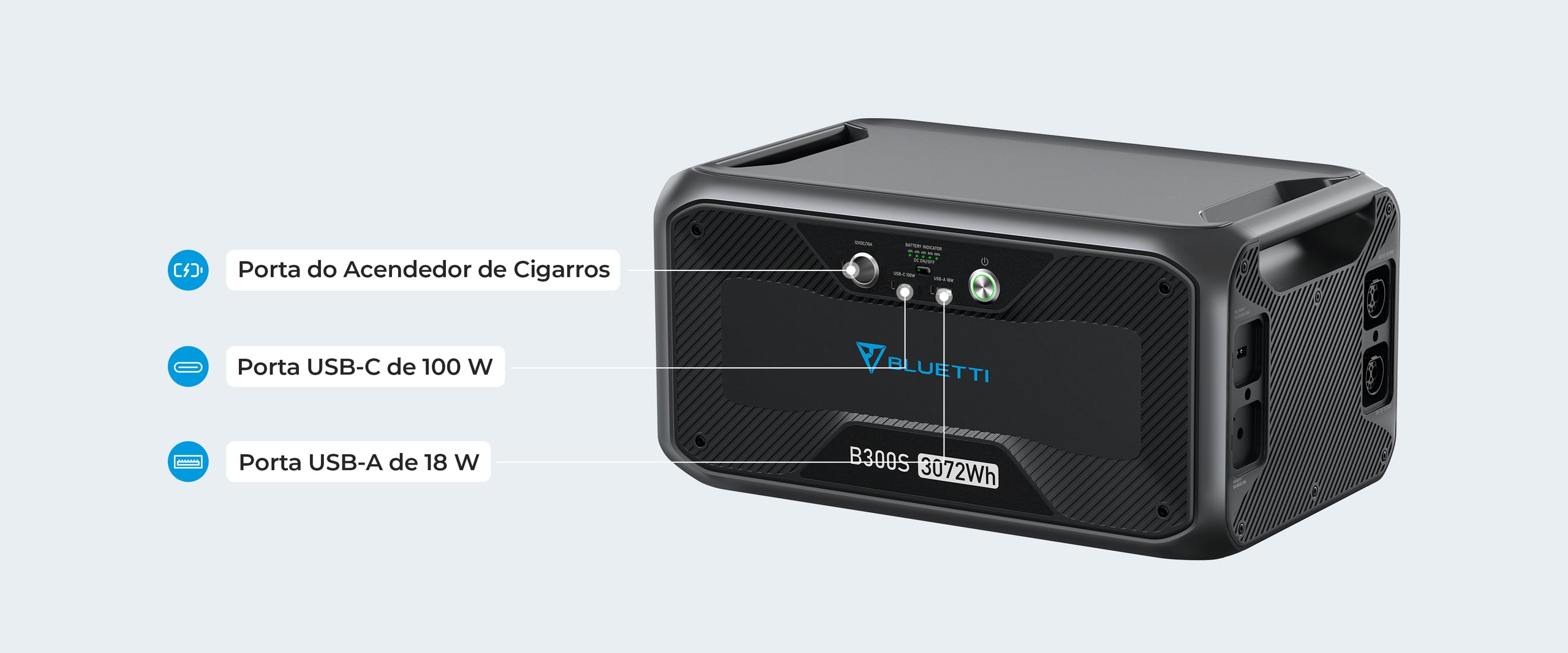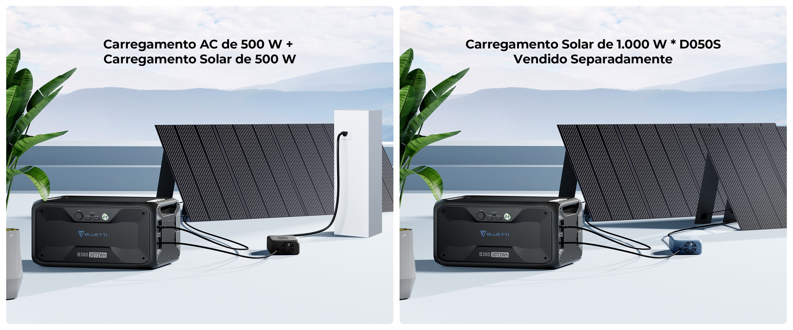 3) Entrada solar: 500 W para a B300S e 200 W para a B300. -