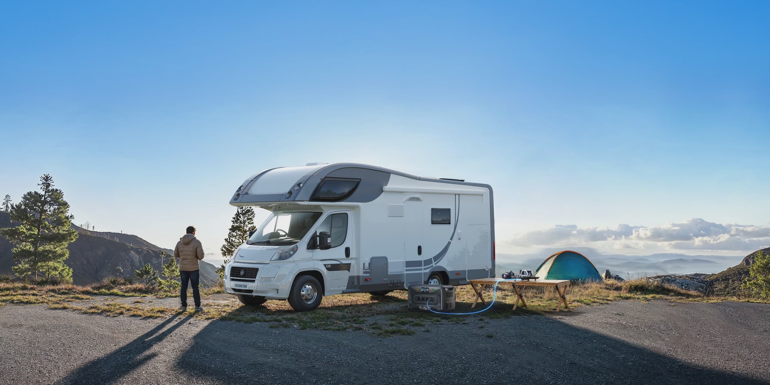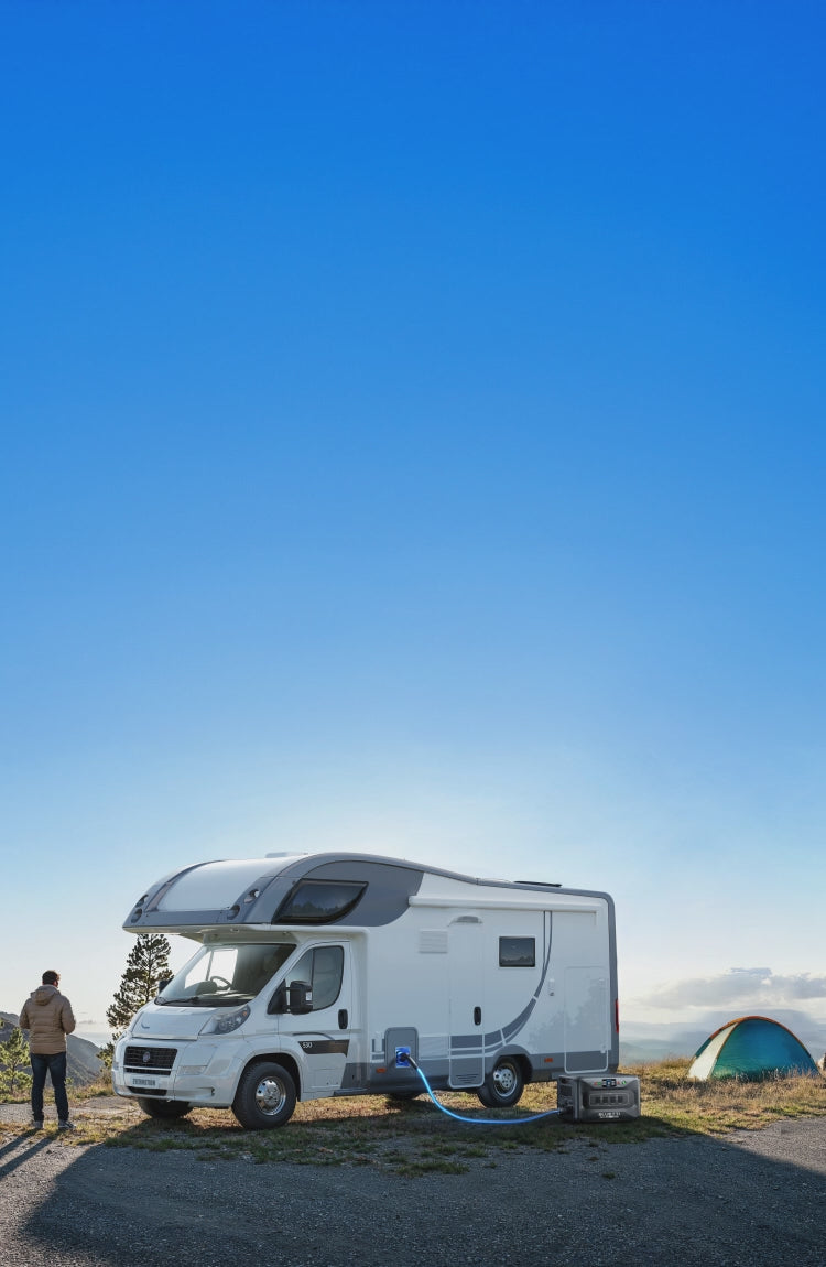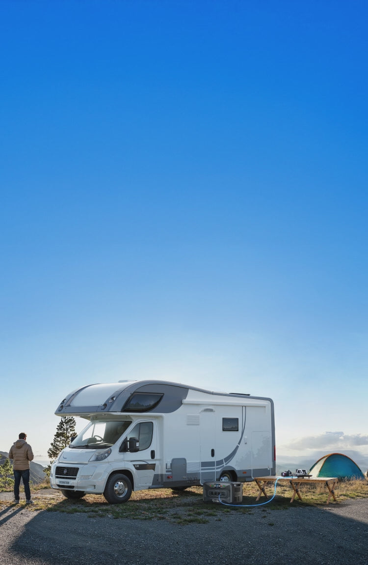 Crie seu próprio sistema de energia fora da rede instalando o Apex 300 com uma caixa de tomadas em sua cabine. Desfrute da conveniência de uma energia semelhante à da rede elétrica, mantendo seus aparelhos de corrente alternada funcionando perfeitamente, mesmo fora da rede.