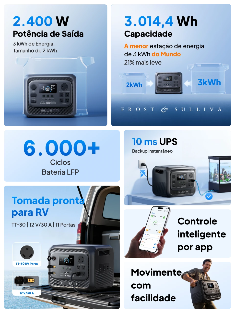 Energia móvel e confiável para backup diário, camping e vida fora da rede.