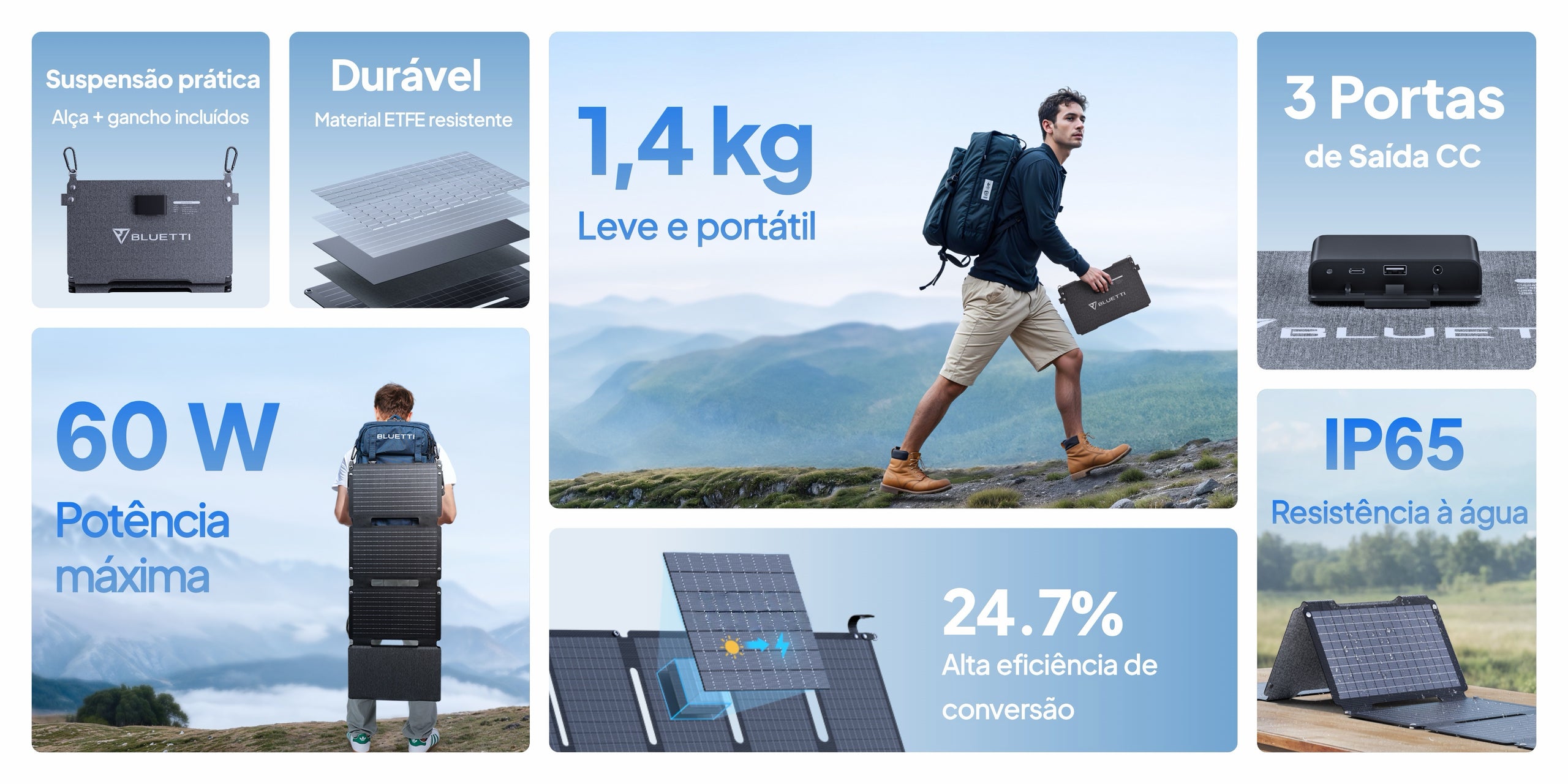 BLUETTI 60W Painel Solar Portátil | Saída de 60 W