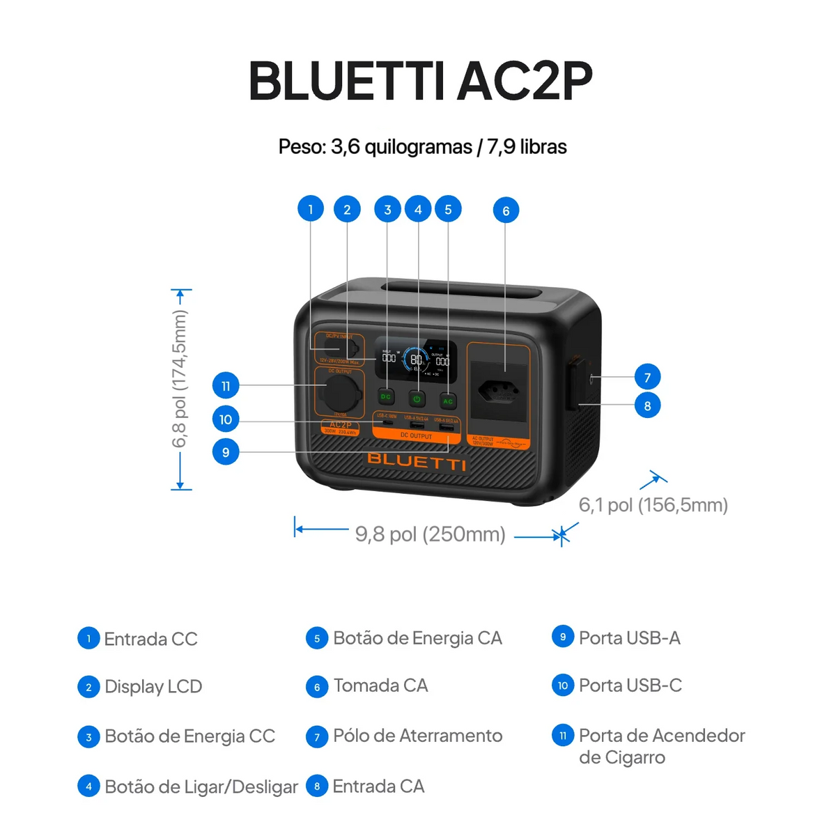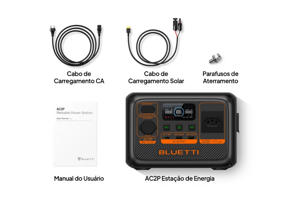 BLUETTI AC2P Estação de Energia Portátil | 300 W 230,4 Wh