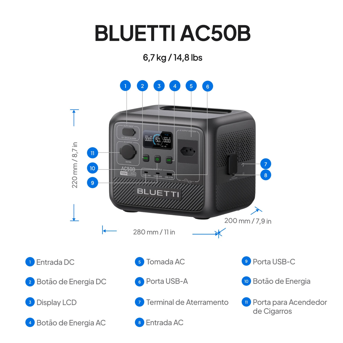 BLUETTI AC50B Estação de Energia Portátil | 700 W 448 Wh