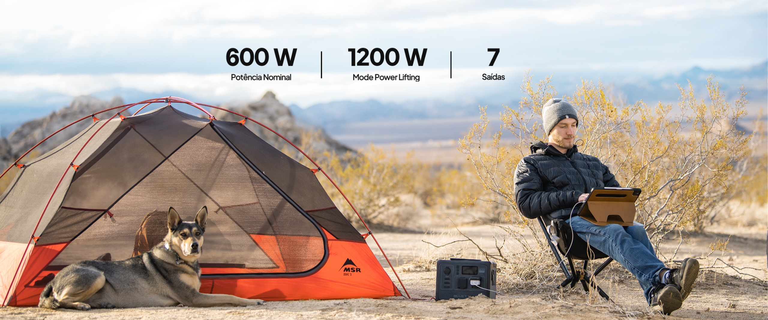 Equipado com a tecnologia Power Lifting líder na área*, o AC60 pode fornecer até 1.200 W dependido do seu inversor de 600 W para alimentar aparelhos resistivos de alta potência, como secadores de cabelo e churrasqueiras. Com 7 saídas versáteis, pode alimentar vários dispositivos de forma rápida, como máquinas de gelo, geladeiras, cobertores elétricos, celular, laptops e muito mais. Aproveite no ar livre o conforto de casa.