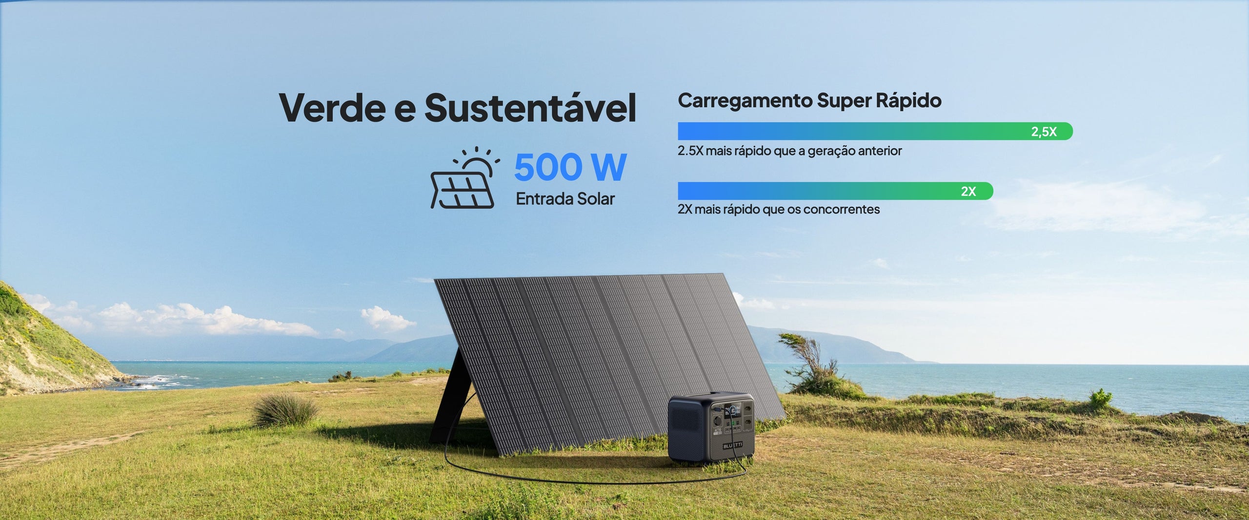 • Consumo rápido de energia solar de 500 W, carga completa em 2 horas