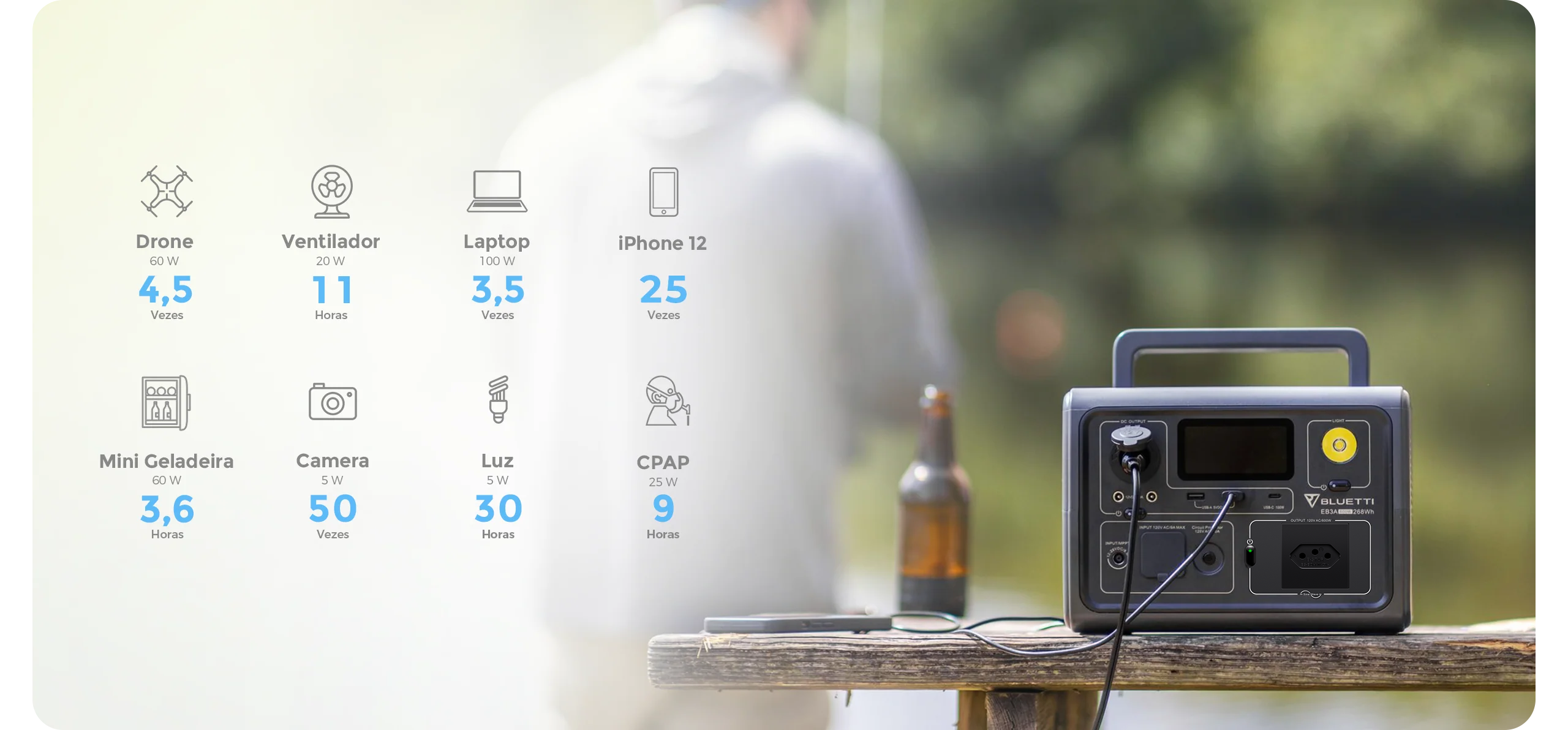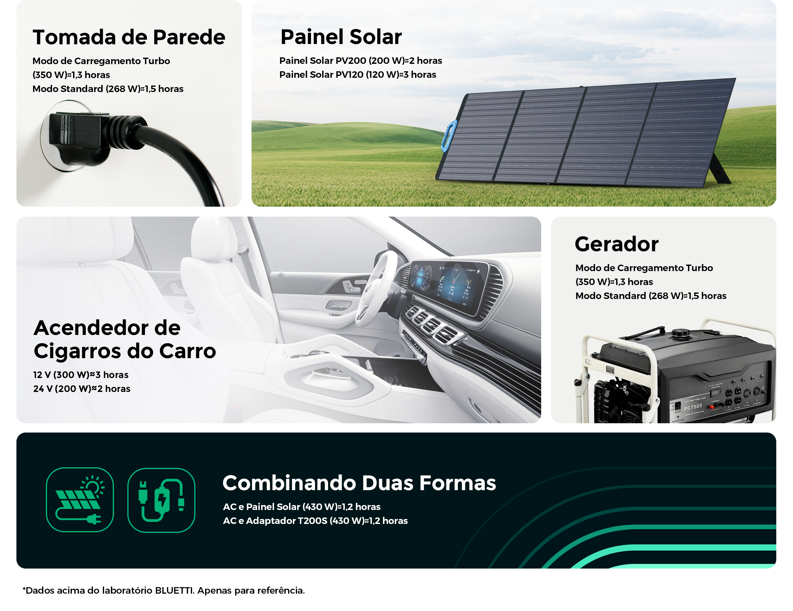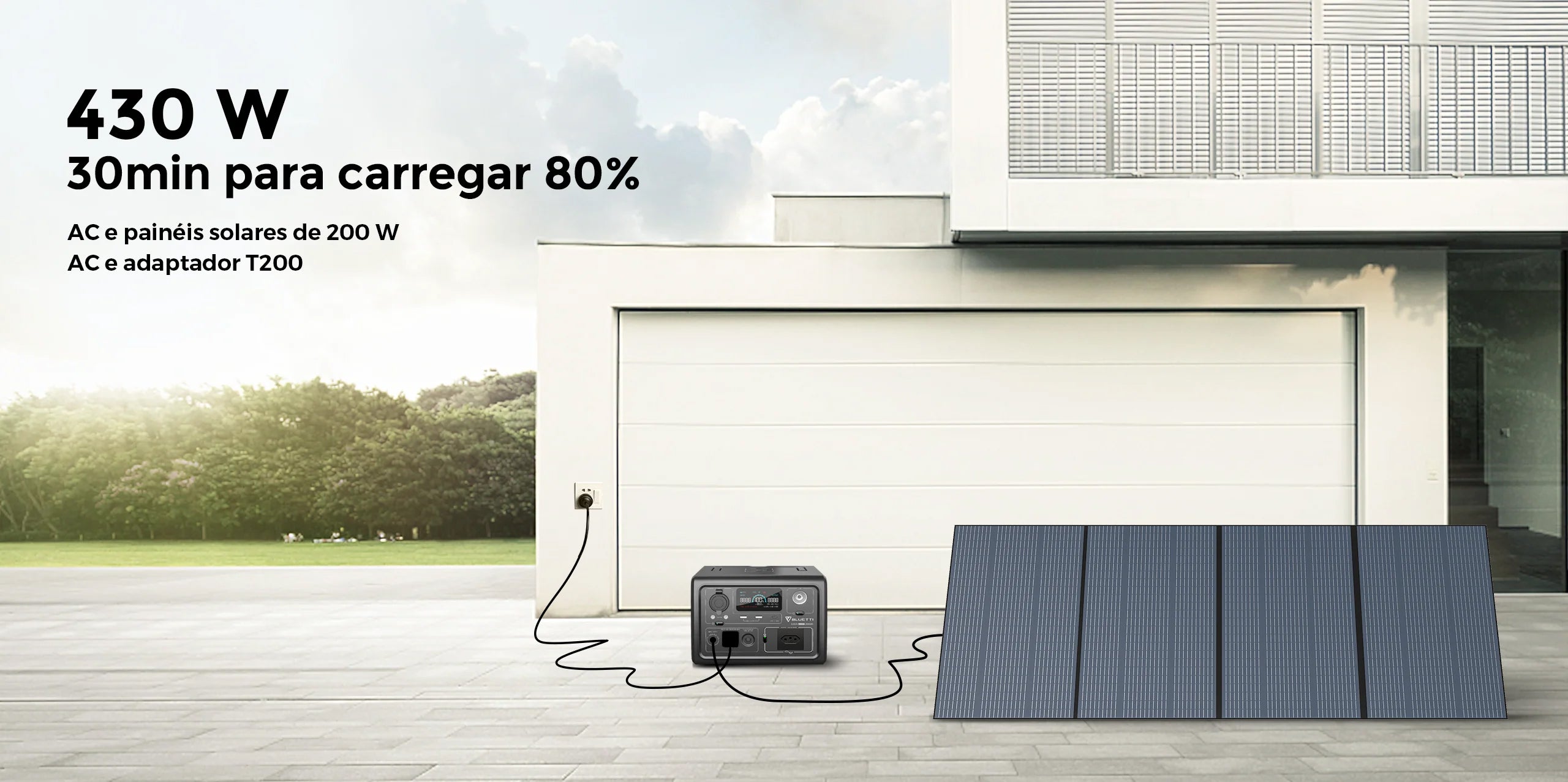 R:430 W máx. via CA e carregamento solar simultaneamente.