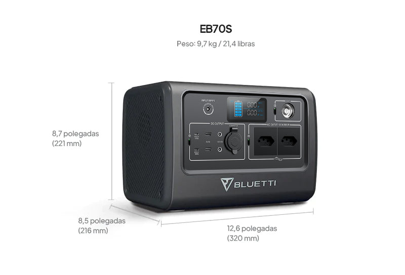 R:A diferença está na potência de saída: O EB70S oferece até 800 W de energia CA, enquanto o EB70 fornece 700 W.