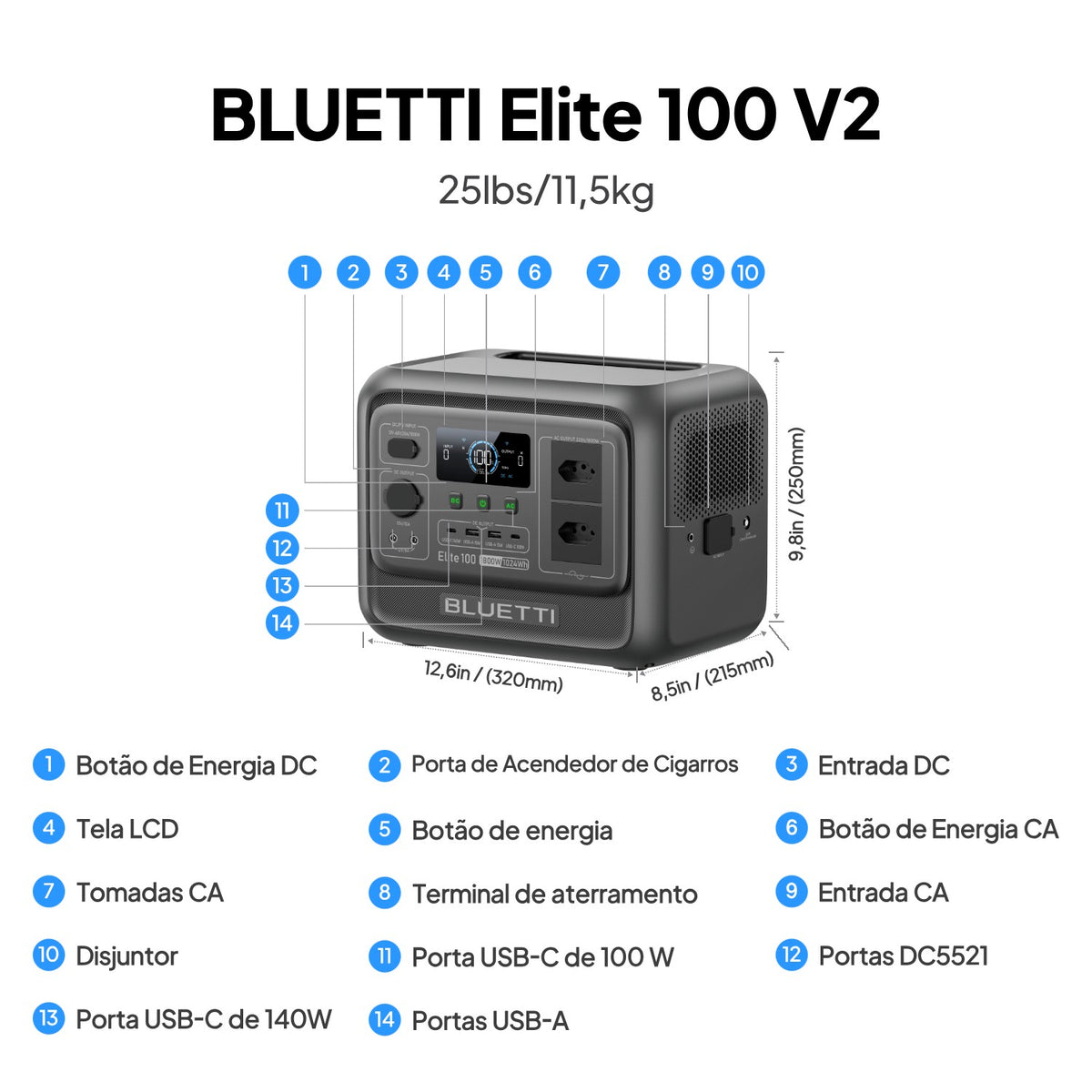 BLUETTI Elite 100 V2 Estação de Energia Portátil | 1.800W 1.024 Wh Manual do Usuário