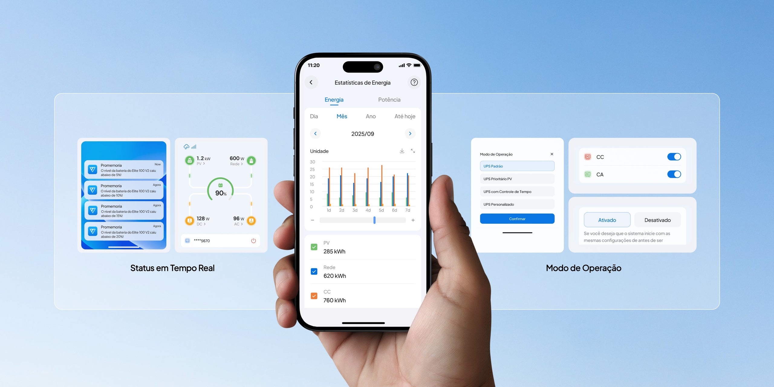 Fique preparado quando a energia cair. Mantenha luzes, Wi-Fi e eletrodomésticos funcionando normalmente.