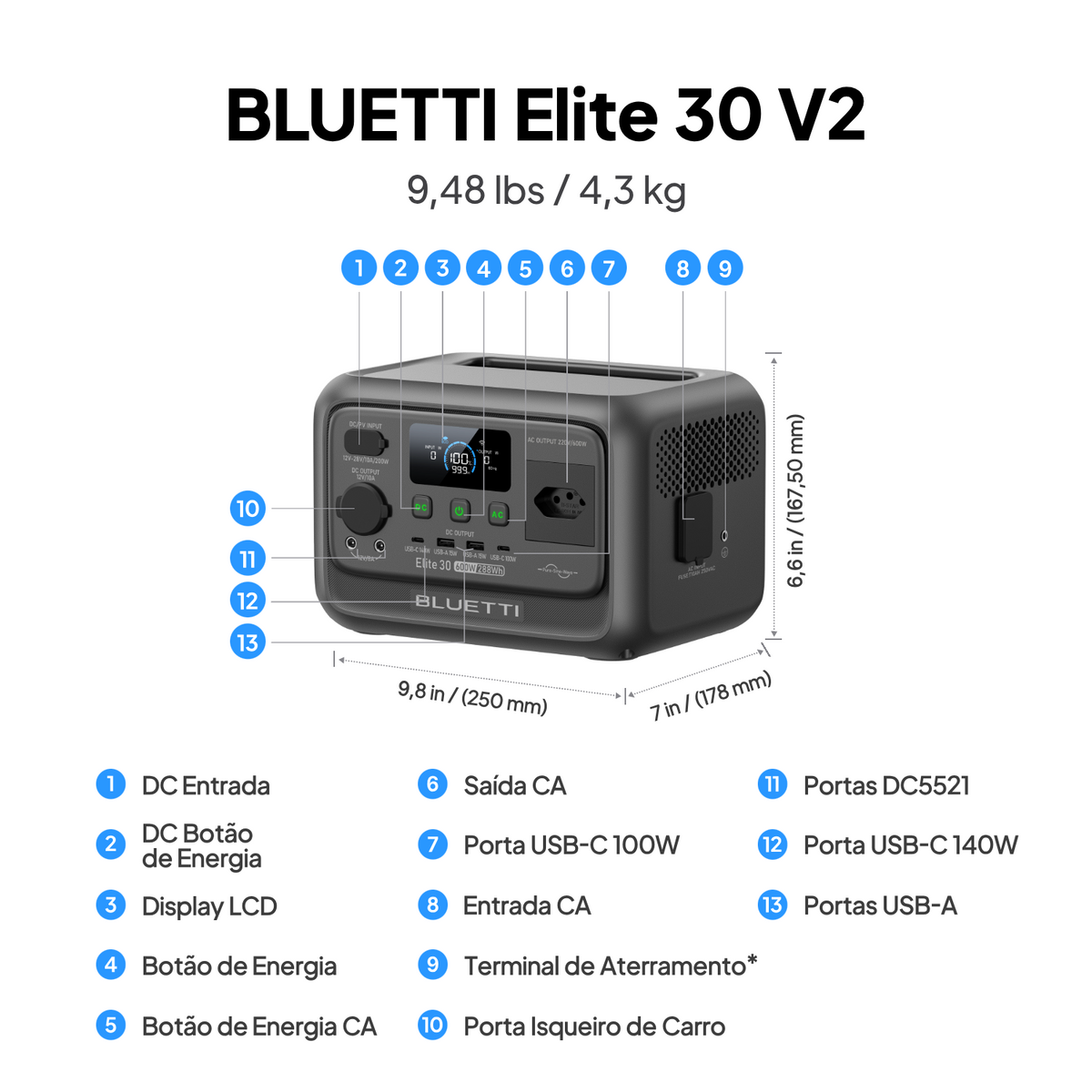 BLUETTI Elite 30 V2 Estação de Energia Portátil | 600 W 288 Wh Manual do Usuário