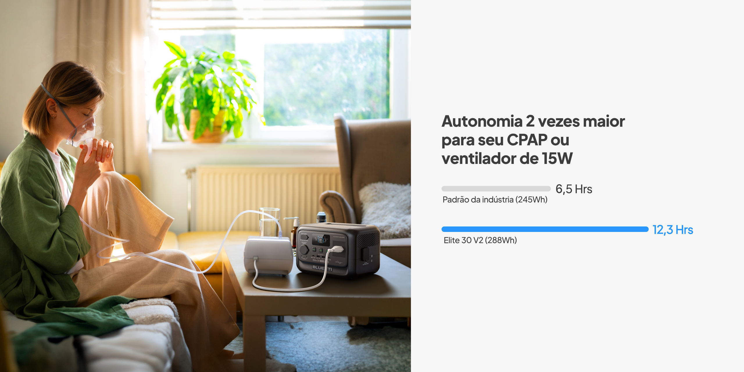 P10: Por quanto tempo o Elite 30 V2 consegue alimentar meus dispositivos?